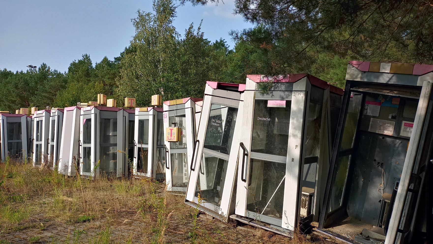 The classic red telephone box was designed in 1924 by London architect Sir Giles Gilbert Scott for a design competition run by the British Post Office. It once served as a space for undisturbed, acoustically shielded communication by telephone. Over the past decade and a half, the last telephone boxes of Deutsche Telekom have disappeared entirely from public space. And yet this piece of street furniture stands like no other for the human need for quiet within the urban environment. Their (provisional) final rest – thousands of them – was found in a patch of woodland near Berlin. As an alternative to this undignified burial, some examples have been given new life elsewhere as public book exchanges. But might it not also be worth considering reviving the classic telephone box as public islands of quiet within the city? Or would they have no chance of survival there? In deliberately limiting himself to the purely photographic depiction of a relic of urban silence, Bodo Hartwig consciously steps away from his native medium – sound. Through this act of crossing over, he confronts his audience with the experiment of reconstructing sound, or silence, from memory or imagination alone.