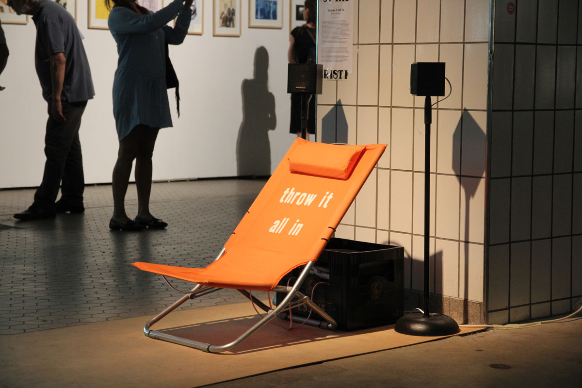 A sun lounger – symbol of relaxation and leisure. Positioned at the apex of a stereo triangle, it vibrates to the rhythm of supermarket sounds: shopping carts, the hum of refrigerated shelving, the monotonous beeping of checkout scanners, snatches of conversation amid the bustle of shopping. What at first sounds familiar becomes, through the physical transmission of the vibrations, intense and unsettling. The installation poses uncomfortable questions: what exactly are we throwing so thoughtlessly into our shopping trolleys? What truly satisfies us? The everyday sounds we usually tune out confront us with our own patterns of consumption – the last shop, the next meal, the relationship between mindfulness and excess.